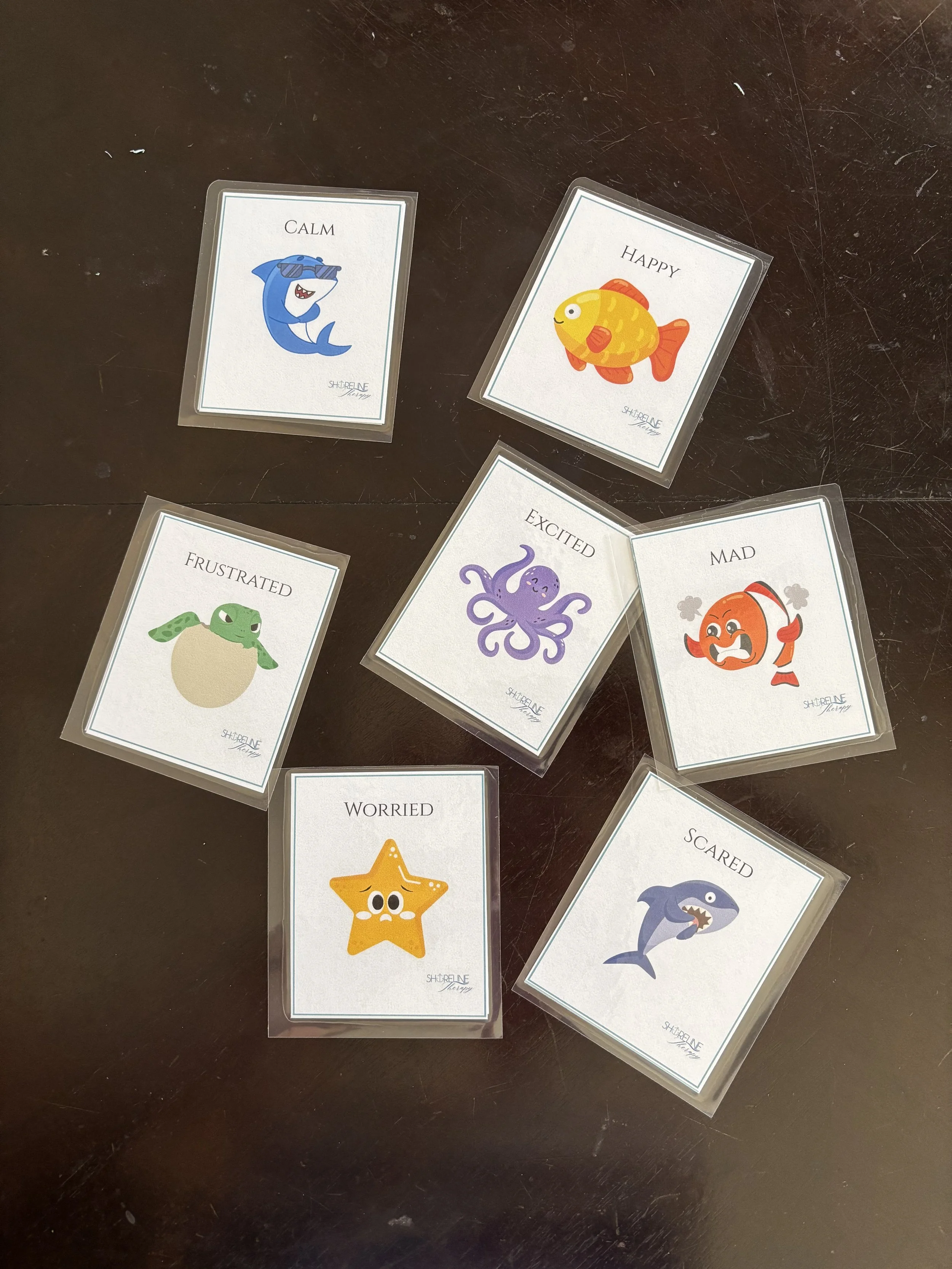Place all “feelings fish” cards feelings side down, in a scattered pile. This pile becomes the “fishing pond.”